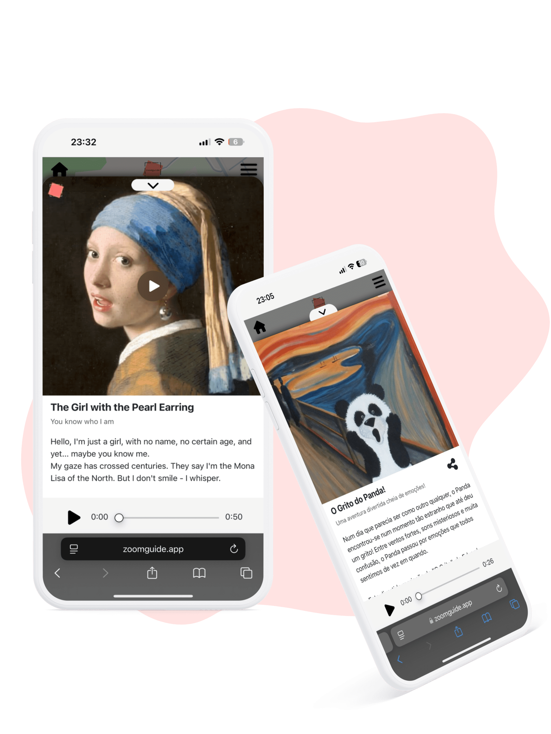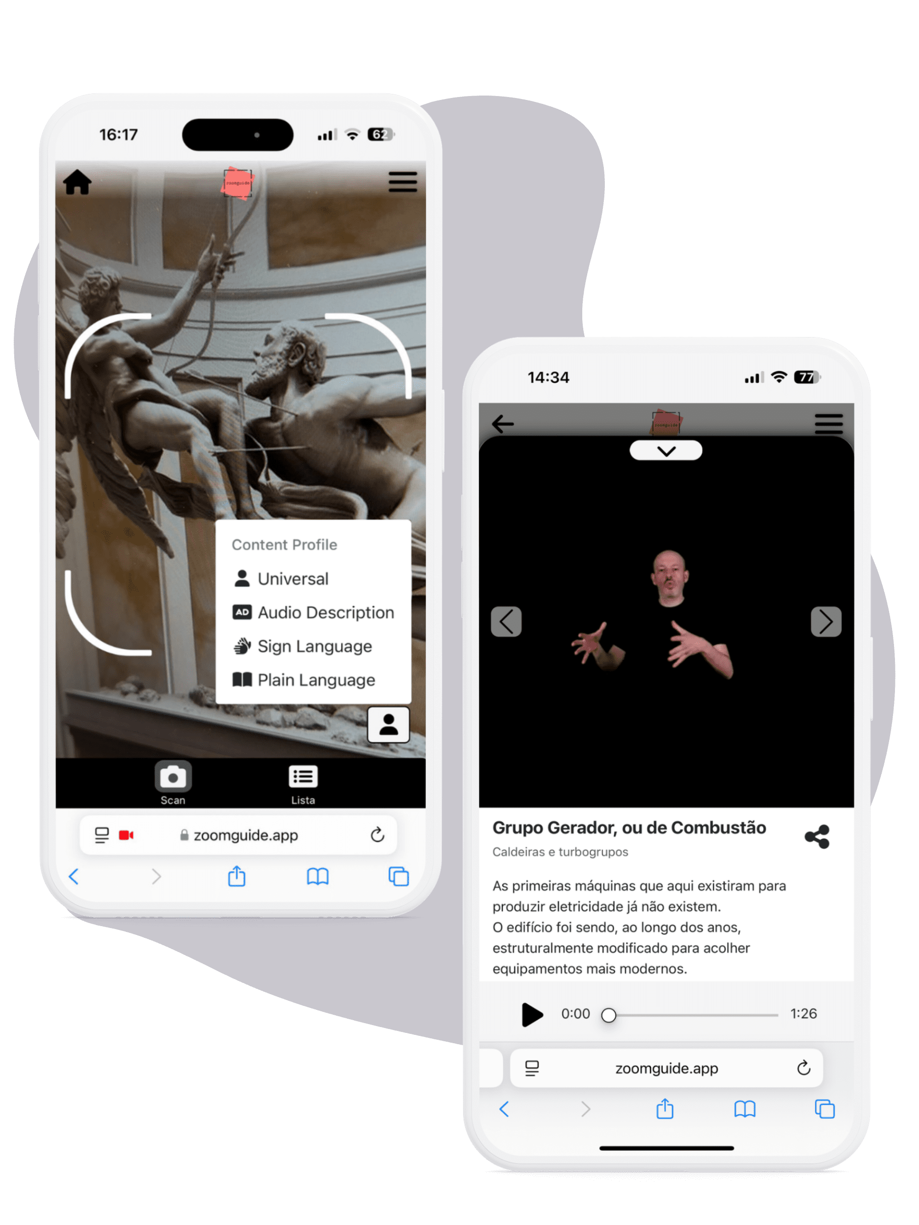 A plataforma Zoomguide transforma visitantes em exploradores. Os nossos conteúdos multimédia – conteúdos acessíveis, animações. ilustrações e realidade aumentada – amplificam essa experiência, criando momentos verdadeiramente inesquecíveis
